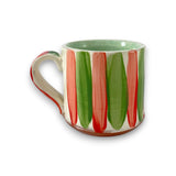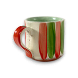 Earthenware clay with white earthenware slip. Food safe glazes. Handmade in Athens, GA