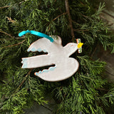 An heirloom ornament handmade and glazed by R.Wood Studio founder Rebecca Wood. A beautiful memento of Athens, Georgia and a simple expression of peace on earth. Each ornament is especially unique as all figures are lovingly painted by hand. Ribbon color may vary.